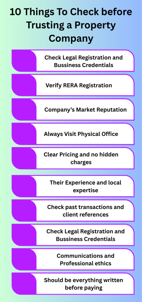 Trusting a property company doesn’t mean believing words—it means verifying facts. A genuine real estate company will always welcome your questions, provide clear documents, and guide you honestly.